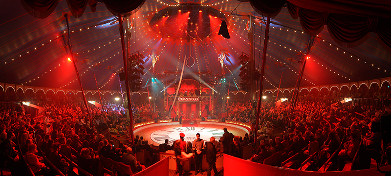 80 historische Wagen, historische Foodtrucks, 120 Artisten, Musiker, Künstler und Mitarbeiter – was mit einem Traum begann, hat sich bis heute zu einem der größten Circus-Unternehmen entwickelt. Verzaubert werden die Gäste in einem der schönsten Circuszelte der Welt, das mit über 10.000 raffiniert konstruierten energiesparenden LED-„Glühbirnen“ und Messinglampen beleuchtet wird und die ganze Roncalli-Stadt in nostalgisches Licht taucht. Schon am Eingang begrüßen Künstler in phantasievollen Kostümen beim Geruch von Zuckerwatte und gebrannten Mandeln zu Live-Musik die Zuschauer. Ein einzigartiges Gesamtkunstwerk, das vom ersten bis zum letzten Moment in eine poetische Zauberwelt entführt. Hereinspaziert!