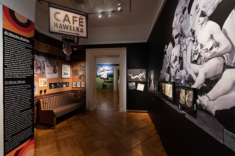 Von Mozart bis Falco setzt sich mit dem nicht ganz unumstrittenen Terminus „Austropop“ auseinander und begibt sich auf Spurensuche nach dem Populären, Subversiven und Kritischen in der Musik und Kunst „made in Austria“. Dabei wird der zeitliche Bogen von Mozart zu Falco und darüber hinaus gespannt. Die Ausstellung erstreckt sich über sieben Säle. Neben dem Starkult um die Künstler*innen oder auch um Persönlichkeiten wie Kaiserin Elisabeth von Österreich in Operette und Musical geht die Schau auf das Selbst- und Fremdbild Österreichs zwischen Im weißen Rössl und Sound of Music ein und behandelt ebenso dessen Ablehnung. Sie führt zu Lokalen wie dem „Hawelka“, dem „Gutruf“, dem „U4“ oder dem „Nikodemus“, die als sozialer Treffpunkt und als Ort musikalischer Entwicklungen stets eine wichtige Rolle spielten. Die ewige „Hassliebe“ zwischen Ö3 und der österreichischen Popmusik-Szene findet sich ebenso in der Ausstellung wie die Tabuthemen Alkohol und andere Drogen sowie Depressionen, die die dunklen Facetten des Austropop zeigen. Auch populäre Themen wie die Sportbegeisterung über das „Wunderteam“ bis zu Wolfgang Ambros‘ „Schifoan“ fehlen nicht und erinnern an magische Momente der österreichischen Sportgeschichte.