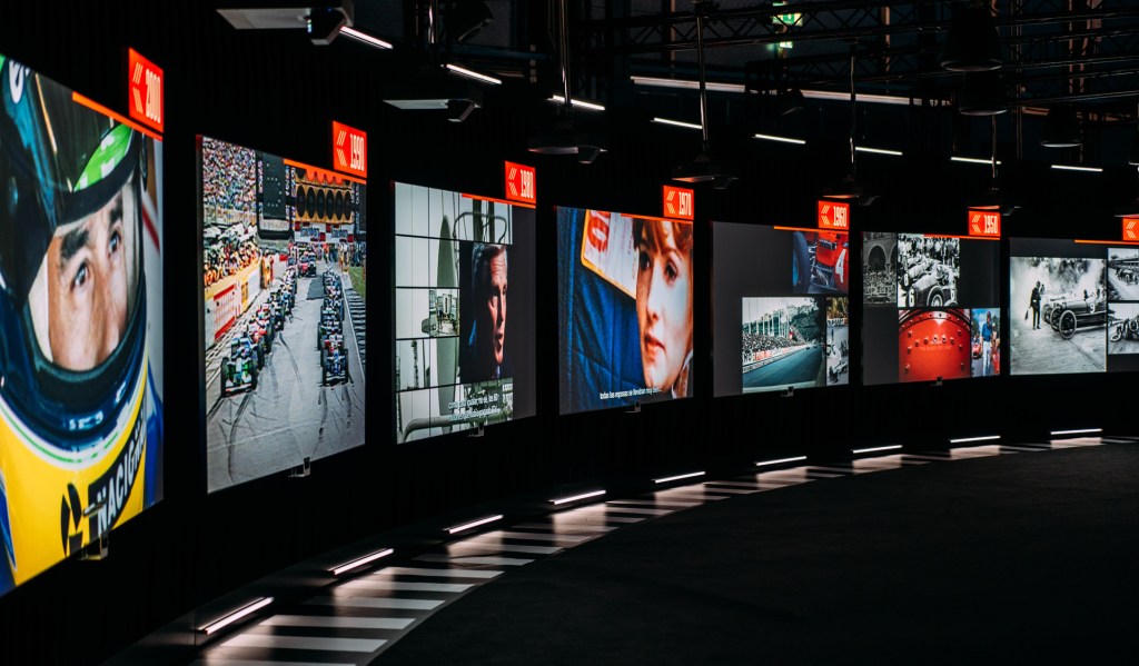 Der Rundgang durch die eindrucksvolle Ausstellung über die Welt der Formula 1® führt die Besucher:innen durch sechs großzügige Ausstellungsräume, die jeweils eine faszinierende Facette des Motorsports aufzeigen. Von ikonischen Momenten bis zu wegweisenden Innovationen wird ein unvergleichliches Erlebnis geboten. „Es war einmal in der Formula 1®“ lädt die Fans dazu ein, in bisher unveröffentlichten Fotos die ikonischsten und entscheidendsten Momente des Sports zu erleben. Dieser Raum dient als Zeitkapsel und entführt die Besucher:innen in bewegende Augenblicke der Formula 1®-Geschichte. In „Fahrer und Duelle“ werden die bedeutendsten Fahrer und legendärsten Rennen seit den Anfängen der Formula 1® gefeiert. Hier wird die unvergleichliche Leidenschaft und die atemberaubende Rivalität, die den Sport geprägt haben, in den Mittelpunkt gerückt. „Revolution durch Design“ präsentiert die überwältigenden und bahnbrechenden Innovationen des Sports. Von historischen Entwicklungen bis zu zukunftsweisenden Technologien wird hier der Fokus auf die fortschrittlichen Designelemente gelegt, die die Formula 1® zu dem machen, was sie heute ist. Im „Design-Labor“ werden die Besucher:innen in eine Formula 1®-Fabrik mitgenommen, wo sie einen faszinierenden Einblick in den Prozess der Herstellung und Weiterentwicklung dieser Hochleistungsrennwagen erhalten. Weiterhin erinnert der Abschnitt „Überlebt“ an die Sicherheitsinnovationen in der Formula 1®. Hier werden die Überreste von Romain Grosjeans ausgebranntem HAAS-Rennauto aus seinem dramatischen Unfall im Jahr 2020 in Bahrain als Hommage präsentiert, die die Bedeutung von Sicherheitsmaßnahmen im Motorsport verdeutlichen. Den krönenden Abschluss bildet die „Pit Wall“ – ein bemerkenswertes filmisches Erlebnis, bei dem Fans die schönsten Momente der Formula 1®-Geschichte wie nie zuvor durchleben können. Dieser Raum verspricht, die Besucher:innen auf eine emotionsgeladene Reise durch die unvergesslichen Höhepunkte des Sports mitzunehmen und sie in die spannende Welt der Formula 1® eintauchen zu lassen.